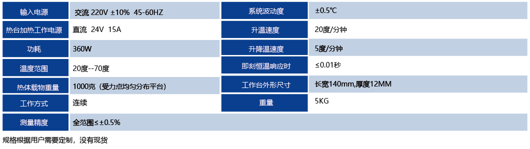 加熱臺由精密溫度控制儀和載物恒溫工作臺二部分組成,二者由一大功率銅針鍍鎳金屬插口導線連接, 載物恒溫工作臺置于光學或電子顯微鏡載物臺上。特別適用配合偏光顯微鏡構成偏光熔點測量系統。